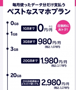 29日午後に正式発表する。関係者によると、データを使った分に応じて料金が3段階で増える体系に刷新する。1GBまで無料、1~3GBは980円、3~20GBは1980円。20GB超だとこれまで通りの2980円とする。